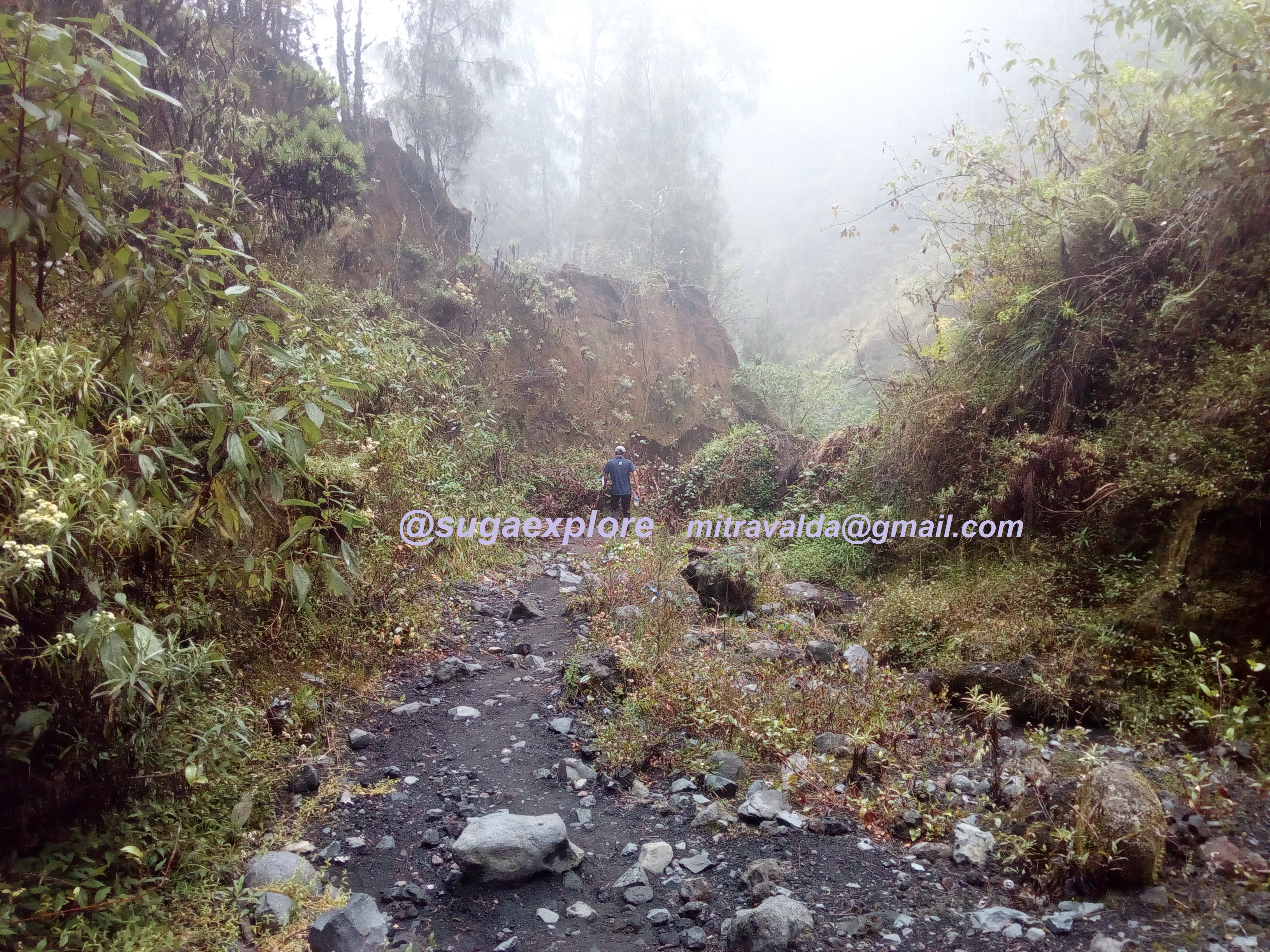 berjalan sekitar 1 jam lebih karena memang jalanan turun terus kita hanya